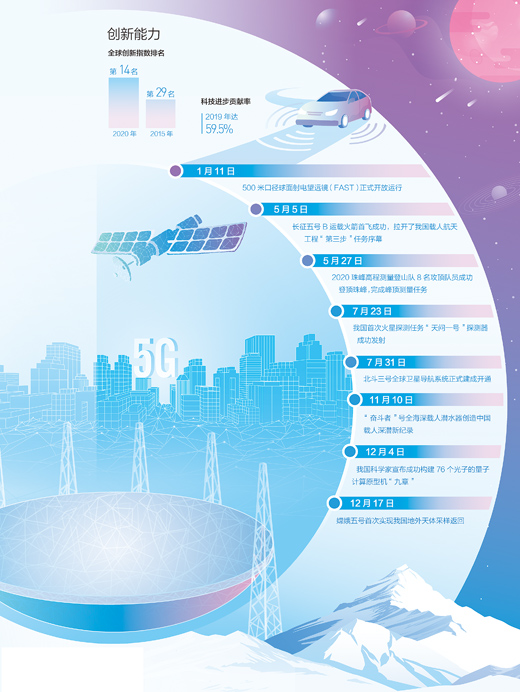 2020年,我们共同见证了这样一串数字——“天问一号”探测器成功发射,已累计飞行约3.7亿公里;在38万公里之外,嫦娥五号探测器实现月球轨道交会对接;“奋斗者”号勇闯马里亚纳海沟,创造了10909米的中国载人深潜新纪录……一项项成就,标注着我国科技发展的高度。一项项创新成果和技术突破,既离不开基础研究的持续推进,也有赖于对创新土壤的厚培。