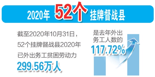 2020年1月25日,国务院扶贫开发领导小组印发《关于开展挂牌督战工作的指导意见的通知》,提出对未摘帽的52个贫困县开展挂牌督战工作,紧盯这些重点地区和薄弱环节。