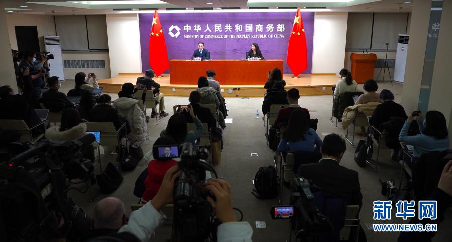 12月30日在北京拍摄的商务部新闻发布会现场。新华社记者 才扬 摄