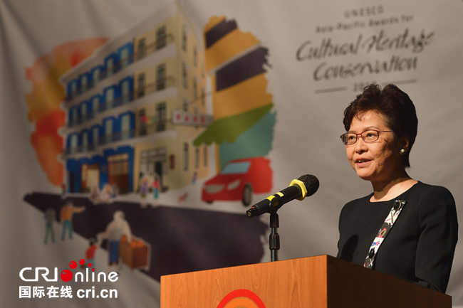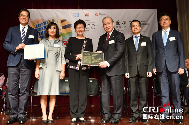 国际在线报道(中国国际广播电台记者 年永刚):位于香港湾仔区的蓝屋建筑群活化计划,获得了联合国教科文组织2017年度“亚太区文化遗产保护”卓越大奖。6日,颁奖仪式在香港举行。香港特区行政长官林郑月娥在出席颁奖礼致辞时说,对蓝屋建筑群的活化计划获奖感到欣喜,这是香港历史建筑保育计划的里程碑,希望香港有更多新落成的建筑物,保留及承传社区的人情味。