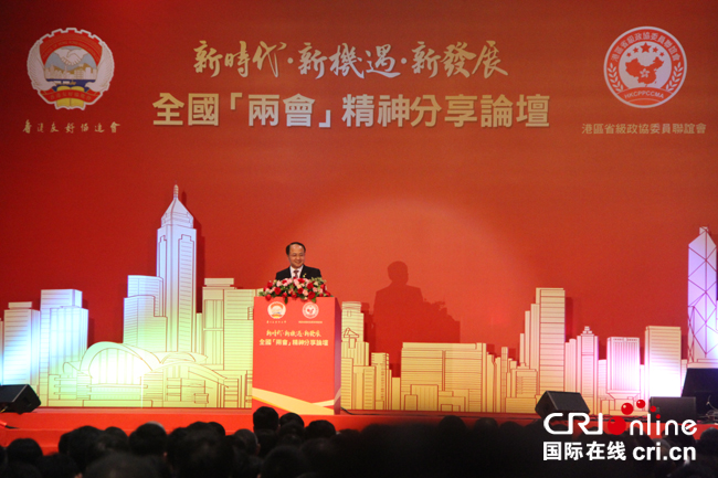 国际在线报道(中国国际广播电台记者 刘志敏):4月6日,“新时代、新机遇、新发展——全国两会精神分享论坛”在香港举行。香港中联办主任王志民担任主讲嘉宾,作了主旨演讲。参加论坛的港区全国人大代表、政协委员也在论坛中分享了他们参加全国两会的感受。