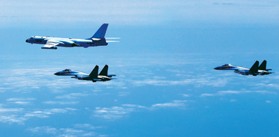 中国空军多型战机近日连续“绕岛巡航”检验实战能力。图为4月19日,中国空军轰-6K等多型战机开展海上方向实战化军事训练。