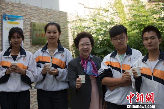 扶轮社成员与学生一同饮用净化后的纯净水。 杨迪 摄