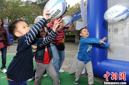 资料图:香港儿童甩橄榄球显身手。中新社发 郑祚声 摄