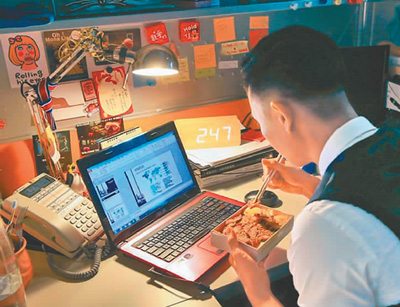 台湾上班族压力大,休息时间也在加班。(资料图片)