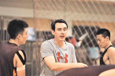 图为郑志龙(中)在指导上海东方大鲨鱼队球员训练。(资料图片)