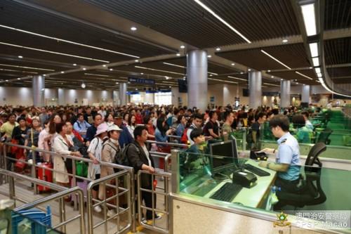 澳门治安警察局领导指示各边境站主管密切关注出入境人流状况,并与对口部门保持紧密沟通,同时实施多项措施,加开检查柜台疏导人流,增派保安人员协助维持出入境大堂及车道的秩序,以有效分流旅客;关闸广场离境大堂入口处亦增派人员执行疏导措施,引导旅客安全有序进入。