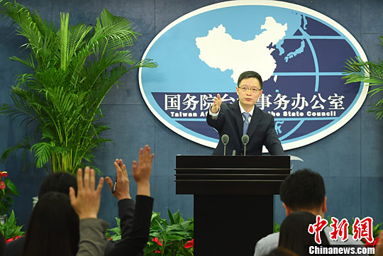 资料图:国务院台湾事务办公室发言人安峰山回答记者提问。中新社记者 张勤 摄