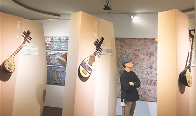 图为观众在参观欣赏敦煌壁画和敦煌乐器的复制件。本报记者 汪灵犀摄
