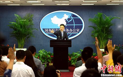 资料图片:国台办在北京举行例行新闻发布会。国务院台办发言人安峰山在新闻发布会上回答记者提问。中新社记者 张勤 摄