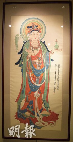 张大千作品《临敦煌观音像》。图片来源:香港《明报》谭淑琪/摄