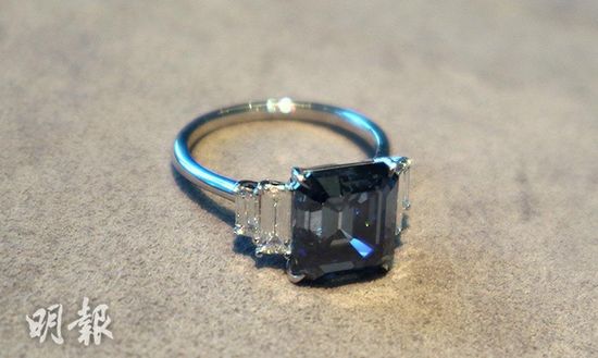 艳彩蓝色钻石配钻石戒指。图片来源:香港《明报》何芍盈/摄