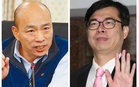 高雄市长一役,国民党参选人韩国瑜(左)和民进党参选人陈其迈(右)民调接近。(图片来自台媒)