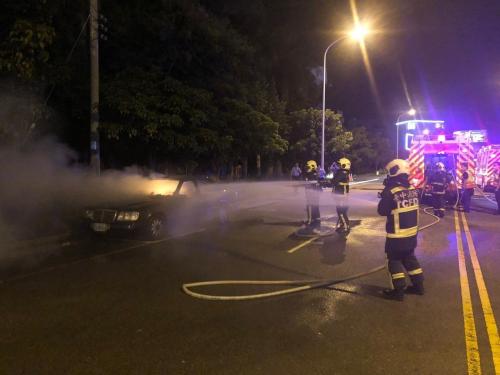 台中市消防局29日晚8点获报:台中市南屯区市政南一路旁有轿车起火燃烧,急需抢救。