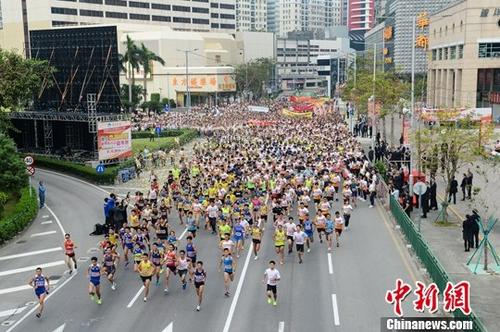 10月1日,澳门各界举行升旗仪式、庆祝酒会、文艺演出、烟花汇演等系列活动,热烈中华人民共和国69周年华诞,与祖国同欢共乐。图为“2018澳人齐贺国庆世界步行日欢乐跑”于金莲花广场前起步。中新社发 钟欣 摄