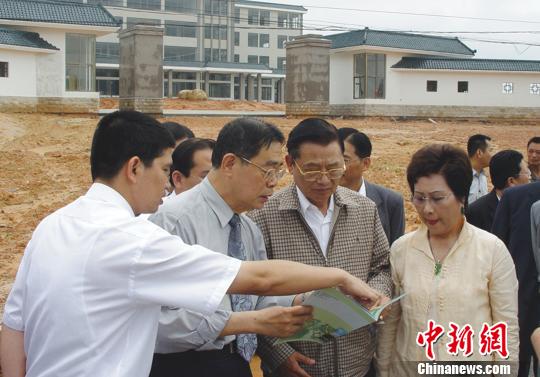 资料图:江丙坤2006年蒞临天福茶学院工地指导。