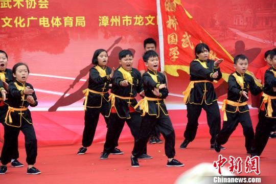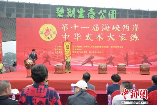 第十一届海峡两岸中华武术大家练活动18日在漳州龙文区开幕。 龚雯 摄