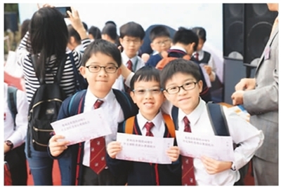 图为参加外交部驻港公署开放日活动的三位香港小朋友。