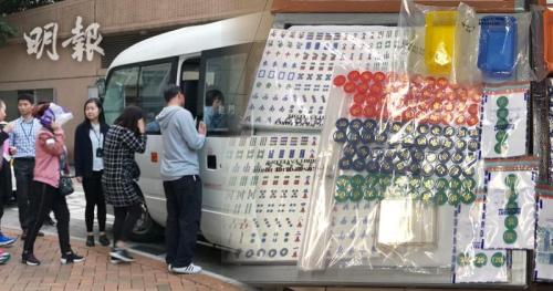 行动中,香港警方共拘18人,检获麻将及筹码等证物。图片来源:香港《明报》/警方提供