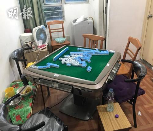香港警方于屯门所捣破单位内发现电动麻将台及麻将。图片来源:香港《明报》/警方提供