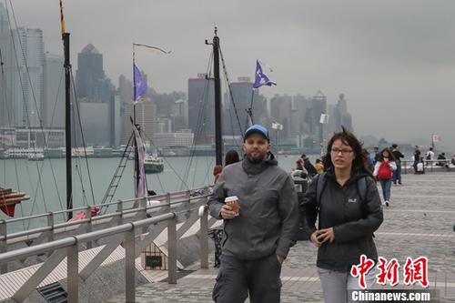 资料图:在香港尖沙咀,不少外国游客穿上棉衣御寒。中新社记者 谢光磊 摄