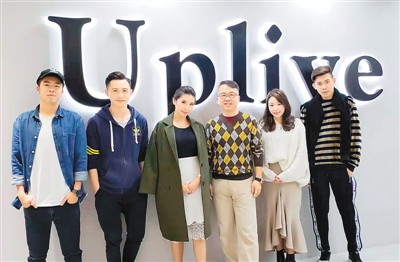 UP直播团队部分成员在手机玻璃墙后留影。本报记者 张 盼摄