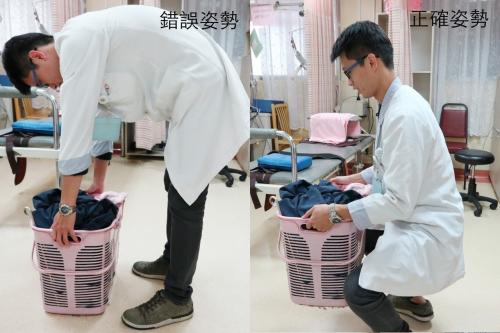 不少民众搬重物容易弯腰施力,造成腰椎拉伤,治疗师示范正确姿势,建议民众应用正确姿势,保护身体不受伤。图片来源:台湾《联合报》 记者 许政榆/摄