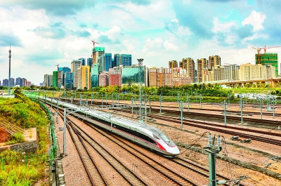 一列复兴号动车组经深圳北站向香港方向驶去。光明图片/视觉中国