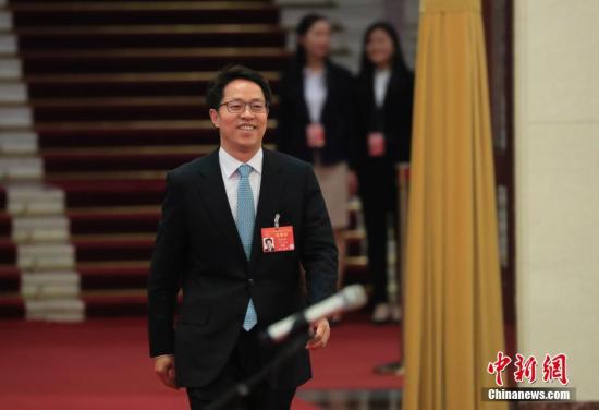 3月8日,十三届全国人大二次会议在北京人民大会堂举行第二次全体会议。图为国务院港澳事务办公室主任张晓明步入“部长通道”接受采访。中新社记者 杜洋 摄
