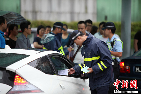 资料图:澳门治安警察局警察在检控车辆非法营。中新社发 龙土有 摄