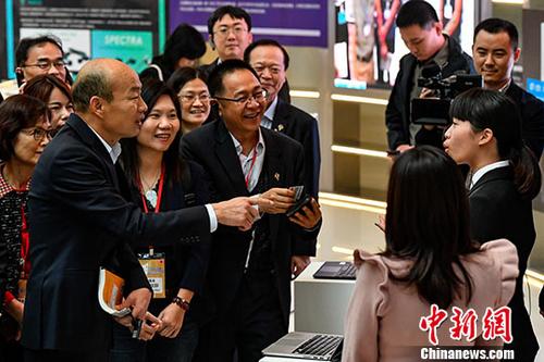 资料图:3月24日,高雄市市长韩国瑜到访深圳。图为韩国瑜与在深圳前海深港青年梦工厂工作的台湾年轻人交流。中新社记者 陈骥旻 摄