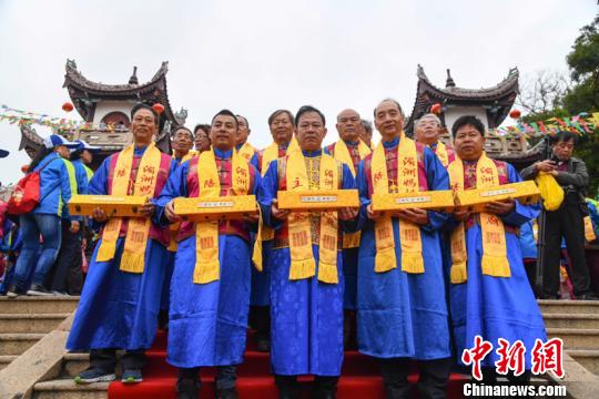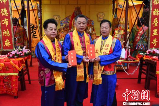 上午7点50分,鸣礼炮、鸣钟、擂鼓、鸣号,祭典仪式正式开始。众人沐手捻香,先后行三献礼,奏《海平》《和平》《咸平》之乐,焚帛、焚祝文,行三跪九叩送神礼。礼毕,林金赞分别向金门26家宫庙代表赠送妈祖纪念品。