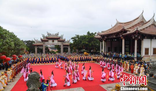 当天,盛大隆重的“妈祖祭典”活动在湄洲妈祖祖庙圣旨门广场上演。金门县县长杨镇浯,金门县知名人士洪允典,湄洲妈祖祖庙董事长林金赞,携金门当地26家宫庙及各界人士上千余人同祀圣典。
