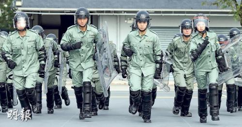《机动部队2019》是TVB与香港警务处联合制作的真警察故事,艺人跟逾百真警察同参与拍摄。图片来源:香港《明报》/黄梓烜 摄
