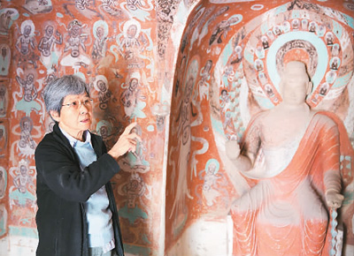 樊锦诗说,敦煌莫高窟实际是开放文物库房供游客参观。面对蜂拥而至、不断突破纪录的游客数量,文物保护面临极大的潜在威胁,但敦煌研究院坚持“保护为主、合理利用”的原则,处理好保护与利用的关系。