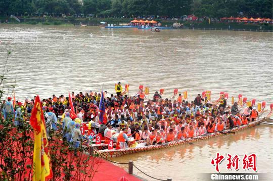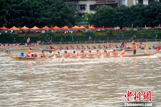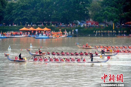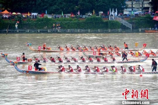 6月2日,2019海峡两岸华安九龙江龙舟邀请赛在华安县城区平湖水域激情开赛。 张金川 摄