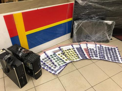 警方在房屋内检获3台电脑、4个显示器,一张“百家乐”赌桌,约1.1万港元赌款及约47.5万港元筹码。图片来源:香港《星岛日报》/香港警方提供