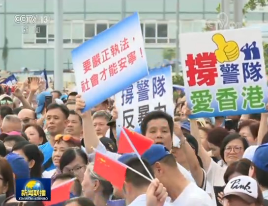 30日下午,香港“撑警队 护法治 保安宁”民间声援集会活动在金钟添马公园举行。大会公布有16.5万名香港市民来到集会现场,人们挥舞国旗,手举“支持警方严正执法”等标语,表达对警方的支持。同时,在网络上举办的“支持香港警察”等活动网上点赞人数已经超过100万。