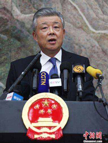 当地时间7月3日,中国驻英国大使刘晓明在伦敦中国驻英国使馆举行中外记者会。中新社记者 张平 摄
