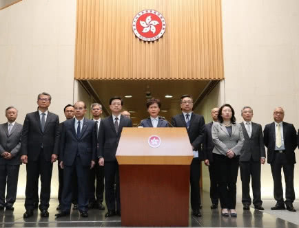 林郑月娥与香港特区政府官员22日会见媒体记者(图片来源:香港“东网”)