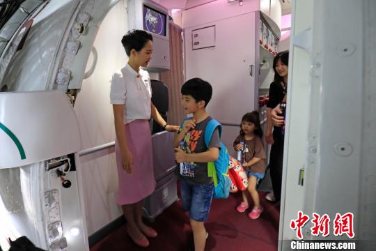 方冠尹在客舱门口欢送旅客抵达目的地。 殷立勤 摄