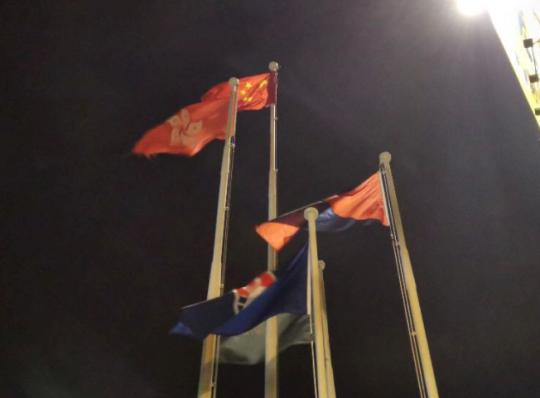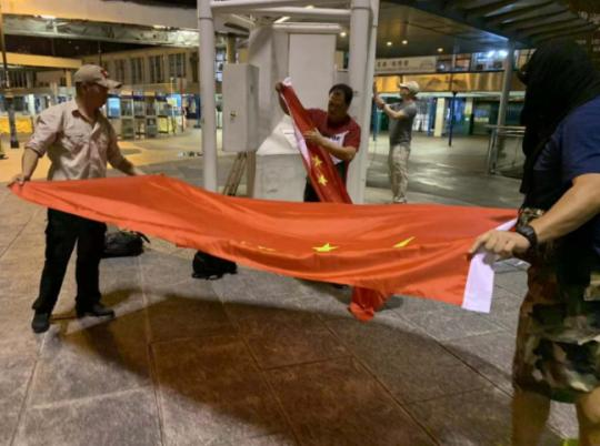 8月4日凌晨,数十名爱国爱港人士自发来此重新升起国旗。