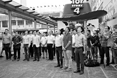 51岁的市民陈朗彦在唱国歌的时候非常投入。“感觉我的声音是人群里最大的。”他笑着说,看到国旗就很激动,国旗象征着国家尊严,不希望再有不理性的人做出侮辱国家尊严的事情。