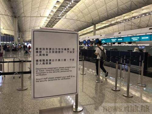 自12日中午12时开始,持有效机票或24小时内离境登机证或有效护照的离境旅客,或持有相关证件的机场员工,才能进入香港国际机场一号客运大楼离境大堂。