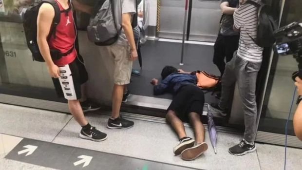 近日,乱港分子在香港地铁上故意阻碍车门关闭,严重阻碍其他市民正常出行、上班。市民忍无可忍,大声怒斥:拜托你们把自由还给我们吧!你们都是靠父母,我们不上班你吃什么?你吃屎啊!