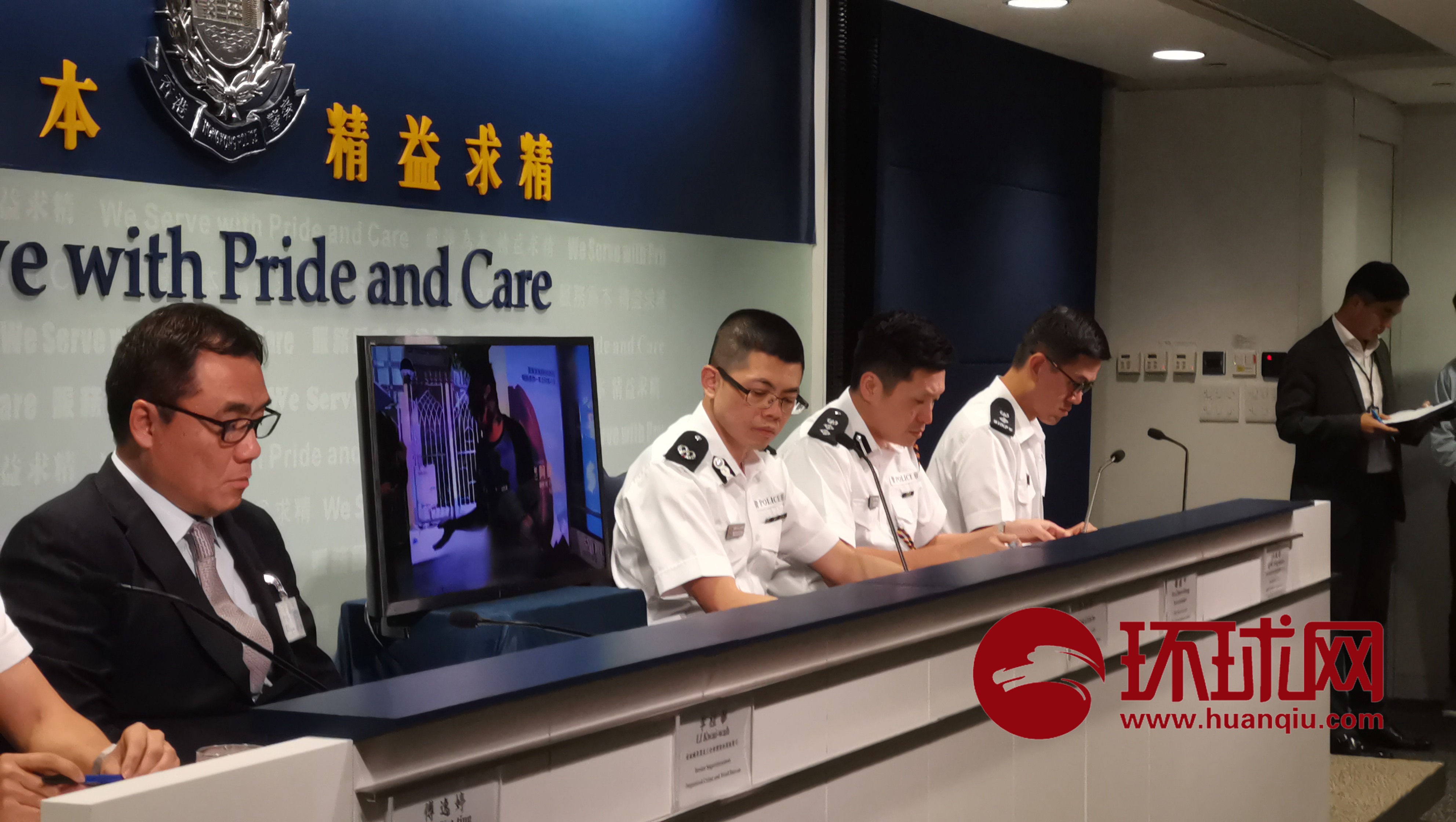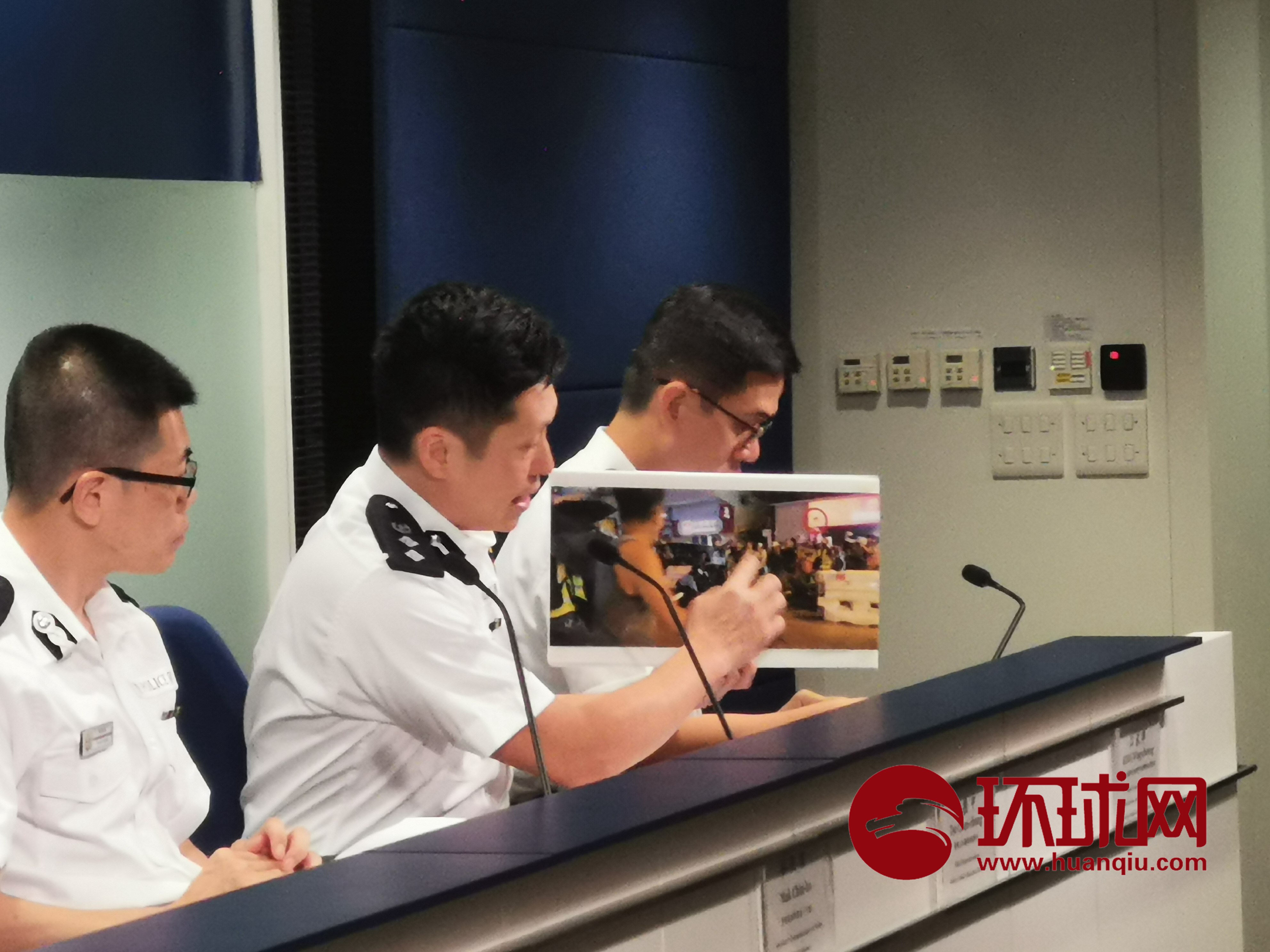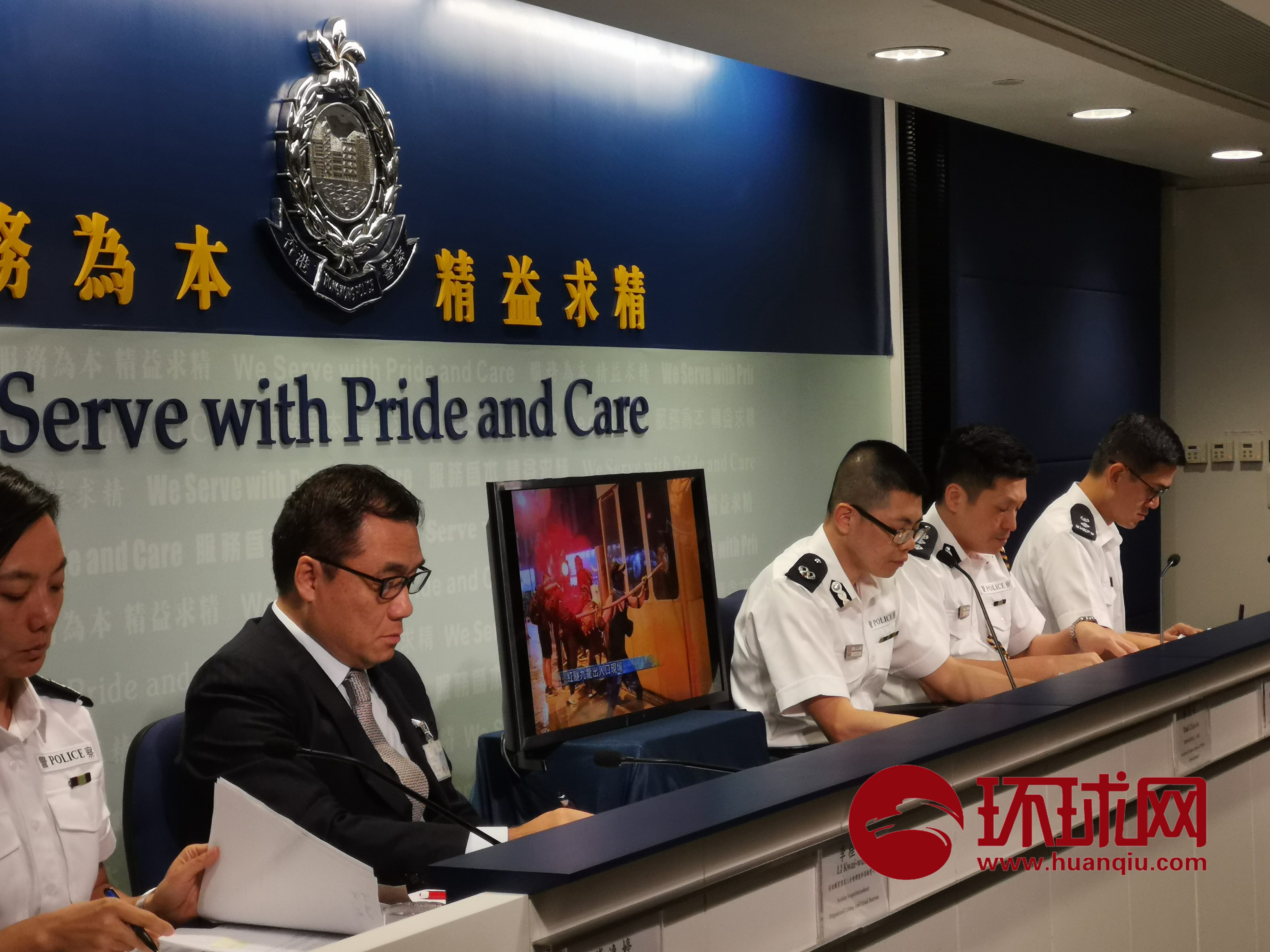 香港警方向媒体展示暴徒在周末进行各种暴行的照片 摄影:环球时报-环球网赴香港特派记者 杨升