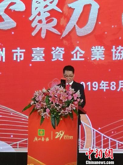 广州市台资企业协会成立29周年庆典在广州举行。广州台协会长王庆祥致辞。 郭军 摄