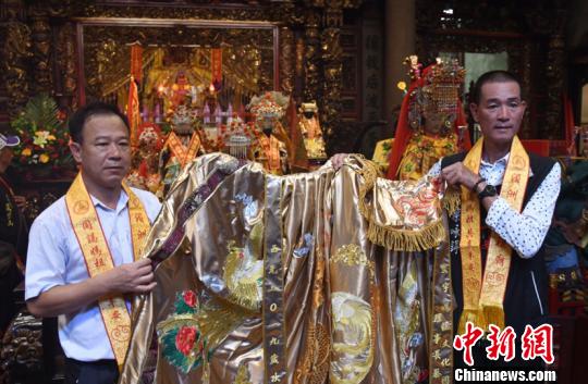台湾妈祖文化国际交流协会向林金赞颁发荣誉理事长聘书并赠送凤袍。高亚成摄