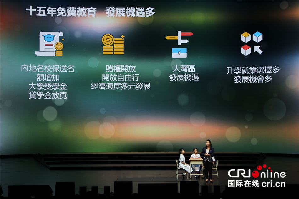 广西壮族自治区政协委员黄洁贞以亲身经历讲述《教育兴澳筑梦未来》的故事。肖中仁摄