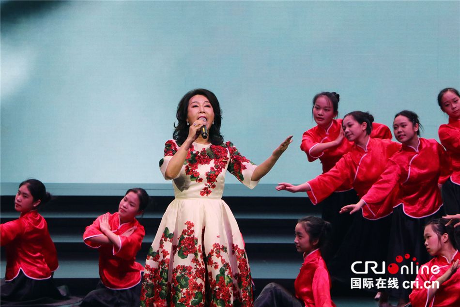 江苏省政协委员、澳门特区文化局局长穆欣欣与澳门培正中学学生共同演唱新编曲的《七子之歌》,其京剧元素的令人耳目一新。肖中仁摄